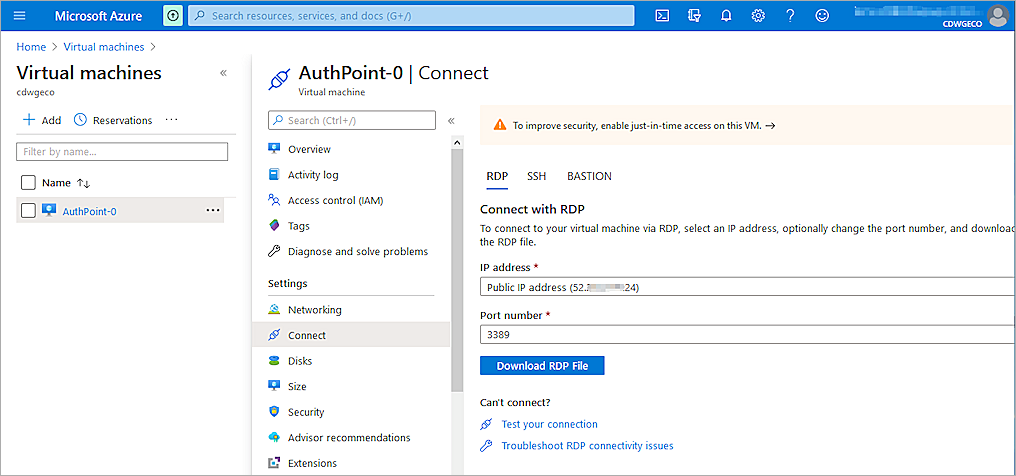 - Click the name of the Virtual machine that you created and registered in the host pool.